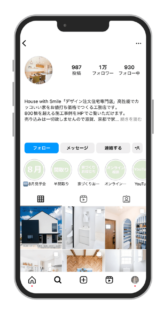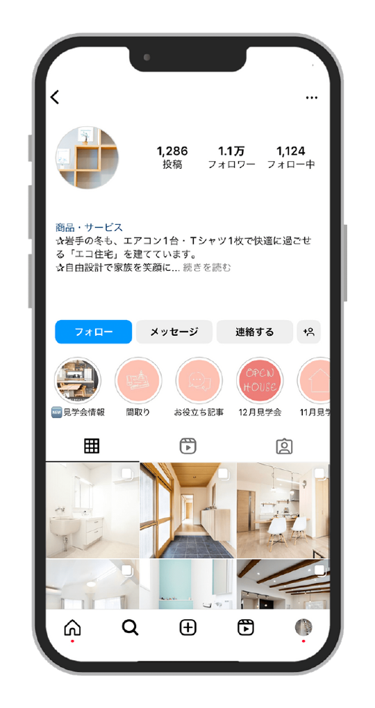 継続的に投稿することで貴社のアカウントがユーザー画面(タイムライン)の上位に表示されやすくなり、より多くの見学会へのご来場やお問い合わせにつながります。 しっかりした体制を構築し、継続的かつ安定的に投稿していきます。